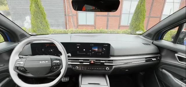 内饰方面,采用了环抱式中控设计,朝驾驶座位倾斜,搭载仪表屏和中控屏双12.3英寸的曲面双联屏,并且搭载了起亚最新一代的车机系统,支持carplay,HUD抬头显示,360°全息影像,OTA升级等功能,中控台当中换装了贯穿式的镀铬条造型设计,和空调出风口融为一体,档把也换新成了水晶质感的旋钮式结构,搭配双幅式的多功能运动方向盘,增强了车内的高级氛围感,值得注意的是刹车和油门踏板也采用了不锈钢材质覆盖,大屏下方保留了旋钮空调调节,细节做的很精致。